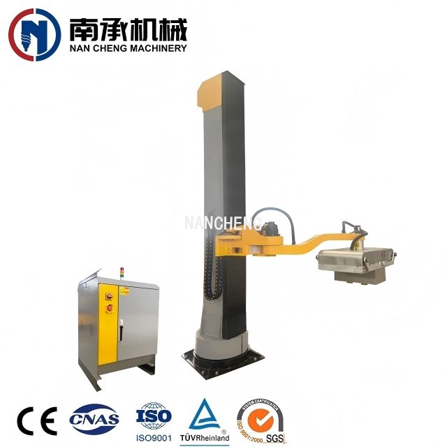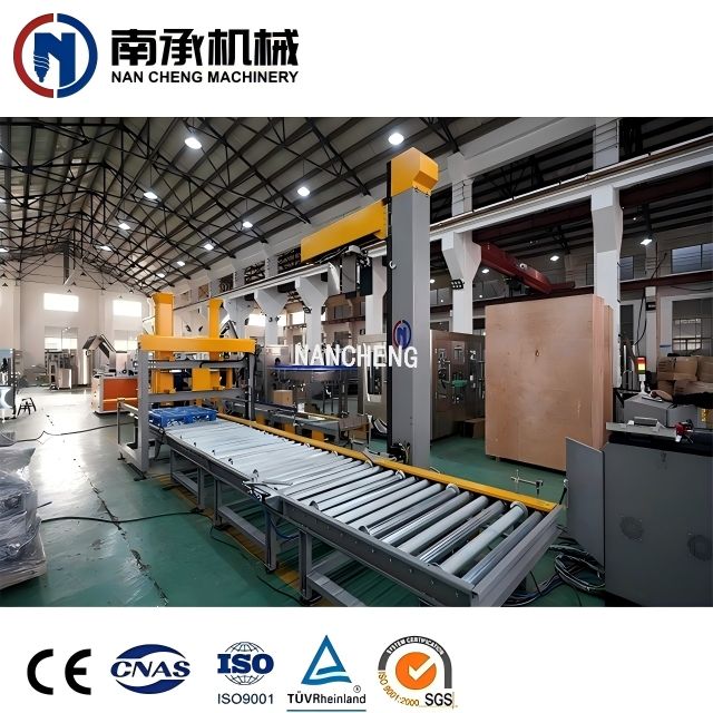 码垛机是将已装入容器的纸箱,按一定排列码放在托盘、栈板(木质、塑胶)上,进行自动堆码,可堆码多层,然后推出,便于叉车运至仓库储存。本设备采用PLC+触摸屏控制,实现智能化操作管理,简便、易掌握。可大大地减少劳动力和降低劳动强度。码垛机是输送机输送来的料袋、纸箱或是其它包装材料按照客户工艺要求的工作方式自动堆叠成垛,并将成垛的物料进行输送的设备。